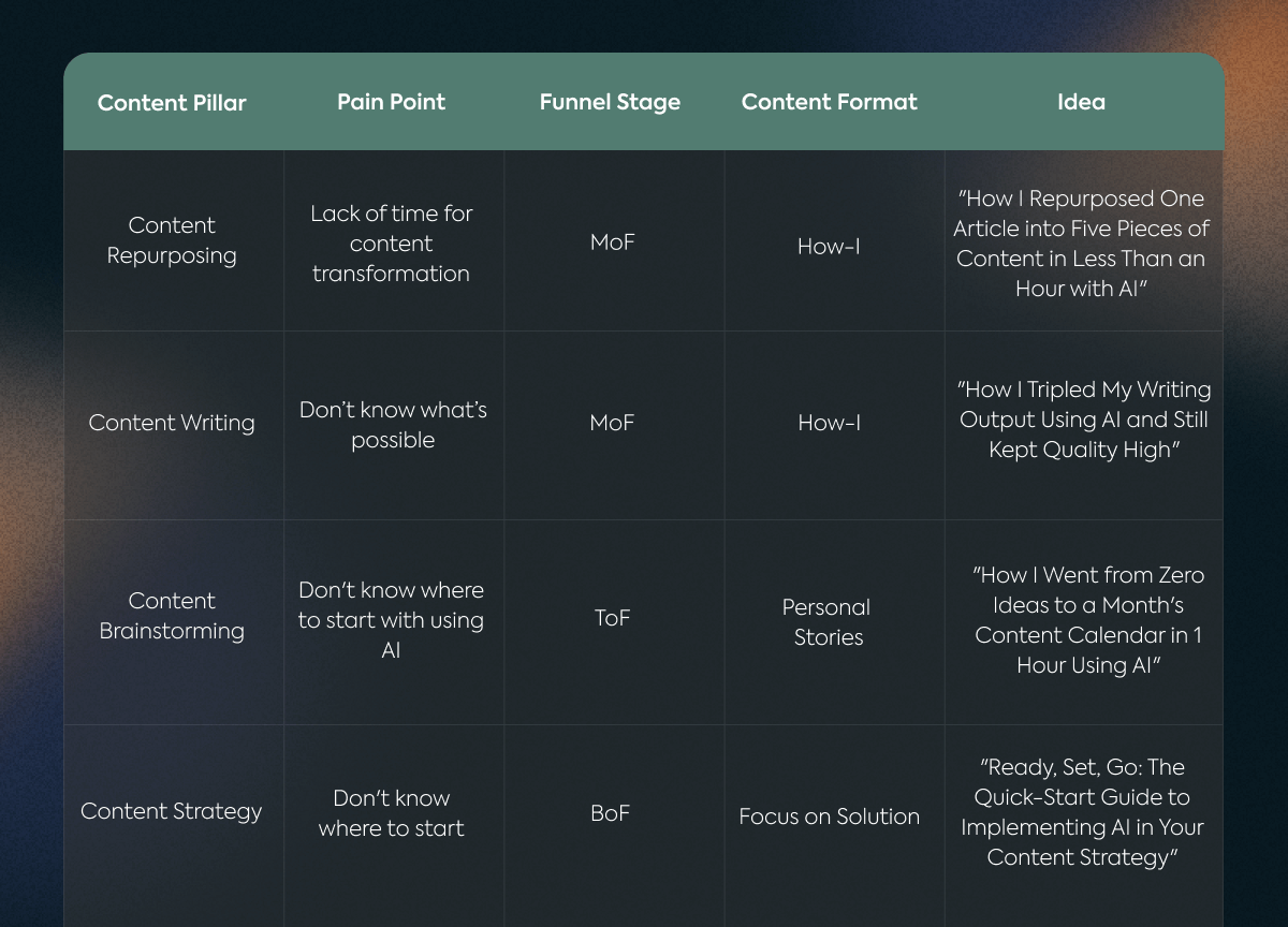 These are the parameters I use when brainstorming content: