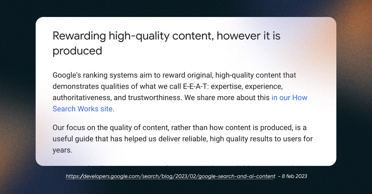 “Google hates AI content” - Nope. Google loves useful content, which is exactly what we'll create.